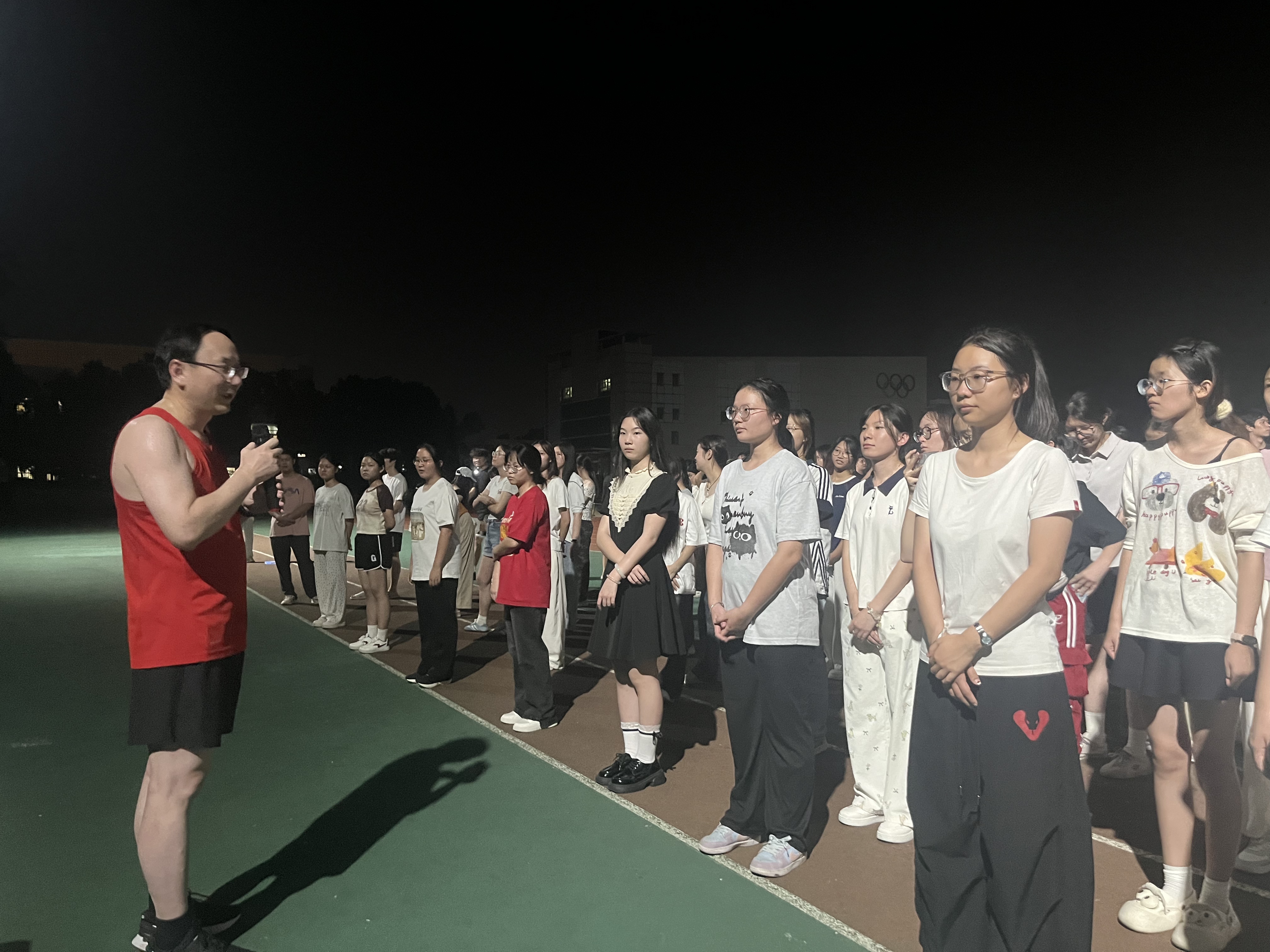 傍晚7时,东院田径场已热闹起来。学生们身着运动服饰,在系团学分会体育部志愿者的引导下有序集合,脸上满是对集体夜跑的期待。活动正式开始前,童耀南院长走上台前做动员讲话,他以“运动是青春最好的注脚”为切入点,结合自身运动经历叮嘱同学们:“大学生活不仅要有书本里的知识,更要有操场上的汗水。希望大家通过夜跑强健体魄、释放压力,在奔跑中结识伙伴、凝聚力量,让运动成为大学四年的‘必修课’。”院长亲切又有力的话语,瞬间点燃了现场氛围,同学们纷纷鼓掌回应。